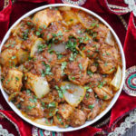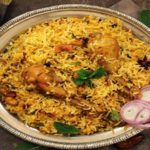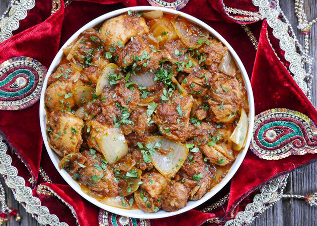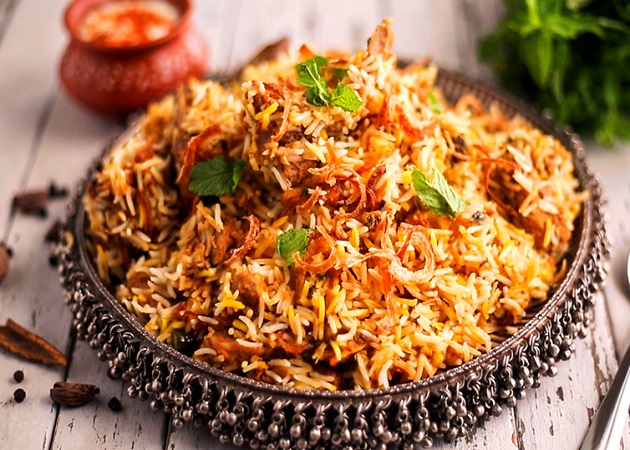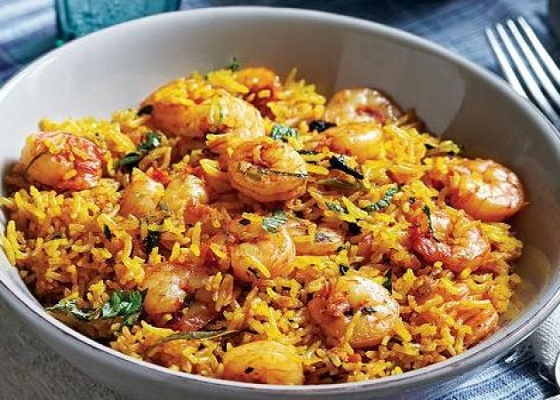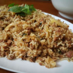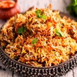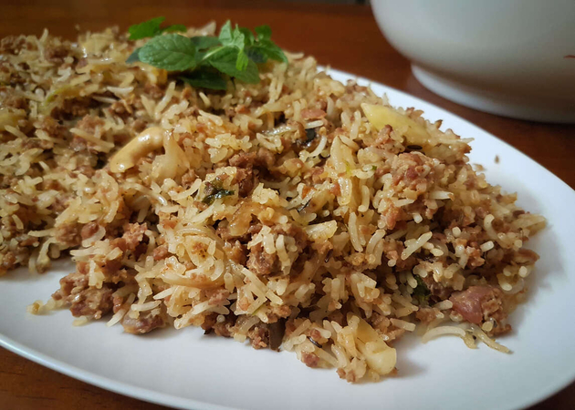 Mughlai style dish of mixed ingredients sautéed with special herbs and spices cooked with basmati rice, mild or hot, to your liking and served with curry sauce or yoghurt sauce